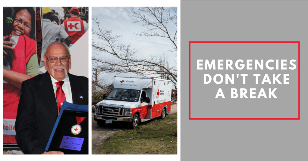 Armando has also been able to volunteer with the Red Cross through disaster deployments. He said one of his best memories with the Red Cross was being deployed to Missouri to help with flooding in the area.