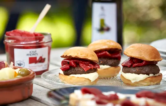 From his fleet of food trucks to his Michelin rated restaurants, Chef Andrés is known for creating small plates with a Spanish flair. Here’s one of his delicious grill recipes that’s a twist above your average slider. Topped with sweet fire-roasted piquillo peppers, they have an elegant, smoky flavor that elevates them from their usual casual backyard status. So, break out the BBQ and bon appétit!