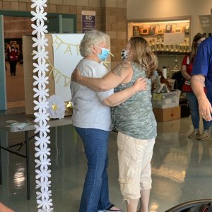 Jessica and the other residents made a community of their own. They had their assigned seats at their table and invited the other residents to join them. Together, they listened to the Facebook Live Community Meetings, played card games and poker, and ate their meals together. Last week she noted, “We’ve really become friends, and now I help welcome other people coming into the shelter.”