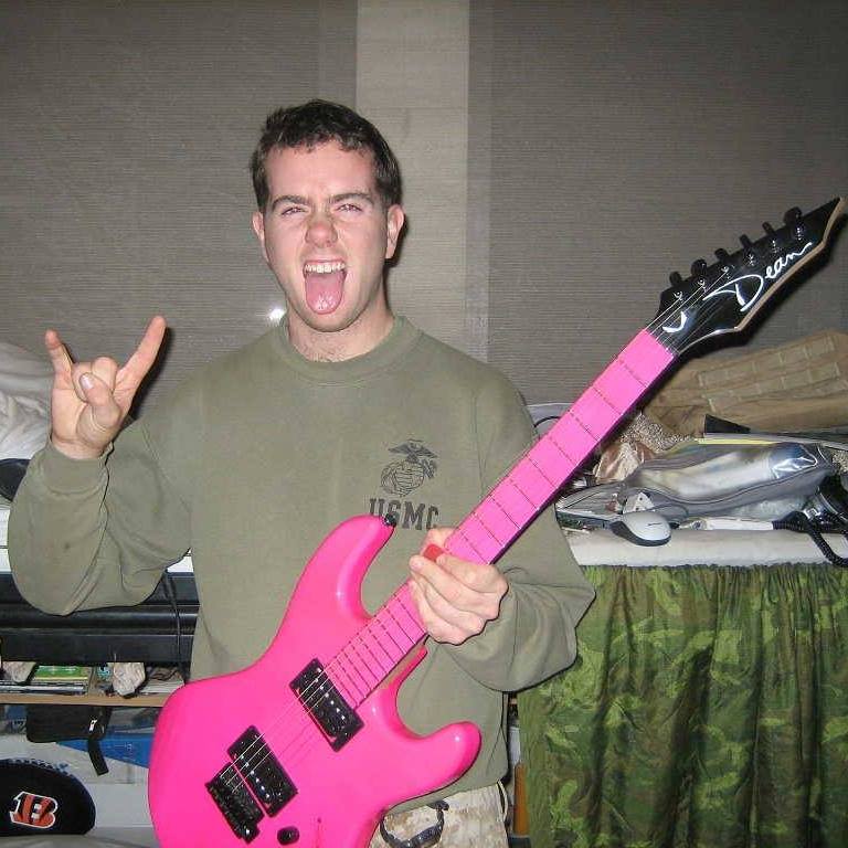 Andrew Bonica and his hot pink guitar won 2nd place in a photo contest with this shot and took home a pair of high-end speakers as the prize.