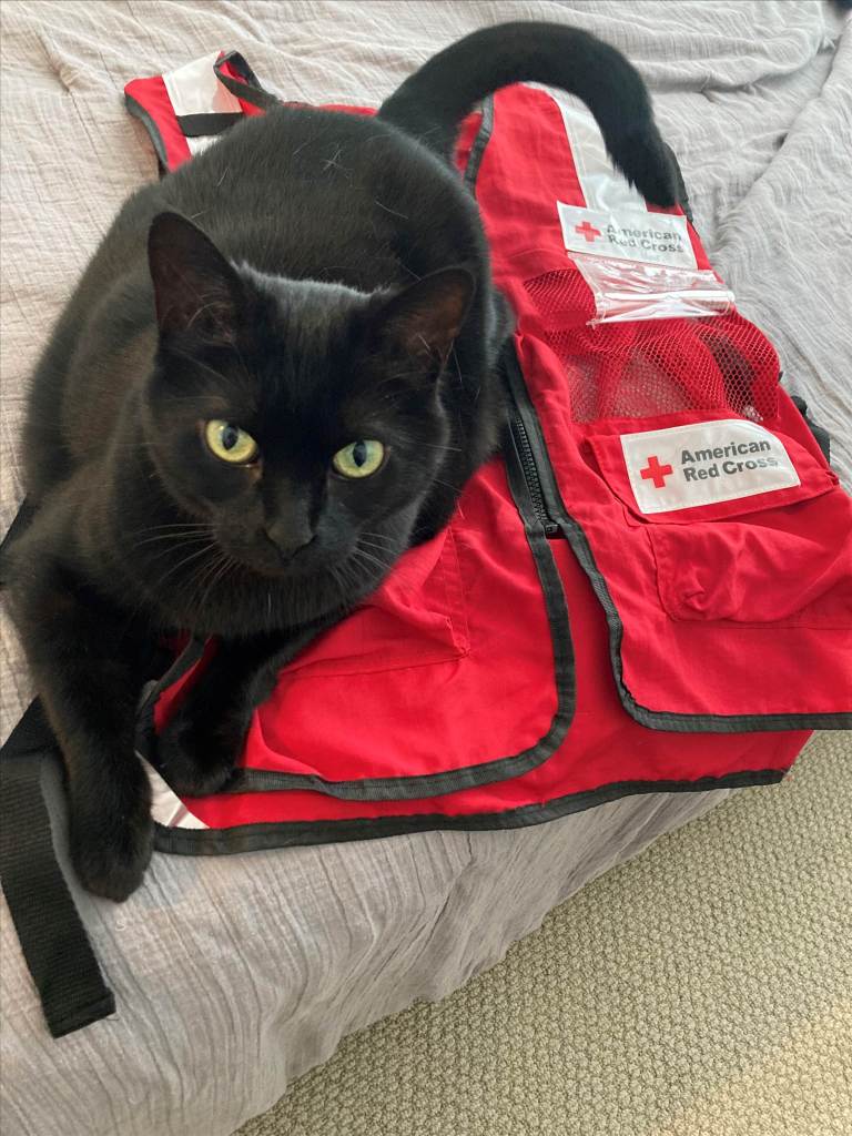 Jersey is ready to pounce into action when the next shelter opens! Her parent Jen Samaritan helps recruit new volunteers to join the Red Cross.